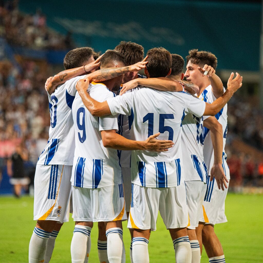 Almeida, Villegas y Da Costa fueron los encargados de anotar en la **tardía victoria** del **Recreativo de Huelva** sobre su filial, en un **partido de entrenamiento**.